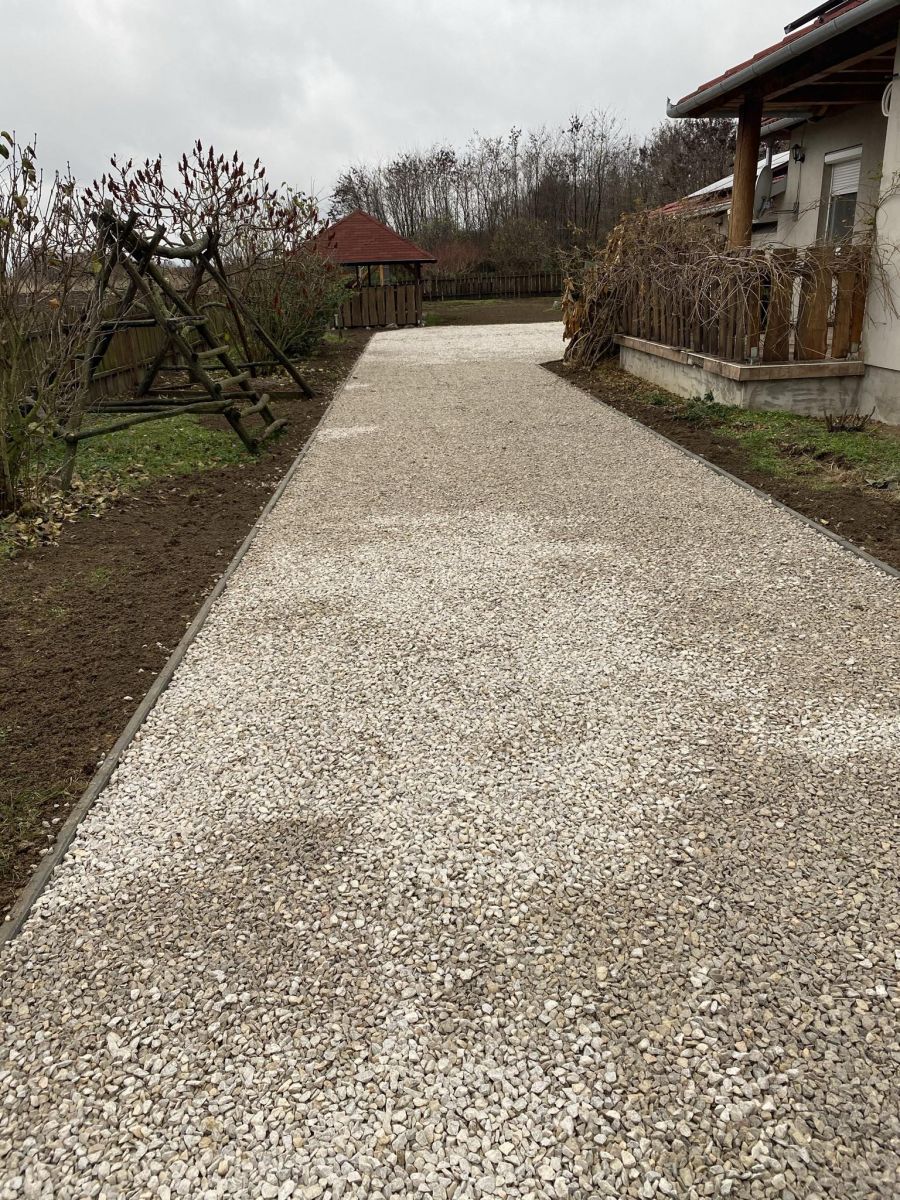 • Kavics zúzalék terítése, tömörítése